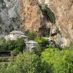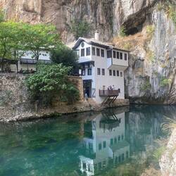 Vor ca. 600 Jahren wurde hier begonnen das Derwischkloster in den Fels zu bauen. Das Kloster ist umringt von steilen Felswänden, zudem sprudelt daraus die Buna-Quelle welche eine der stärkstenBaca selengkapnya