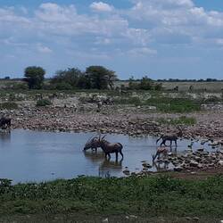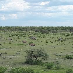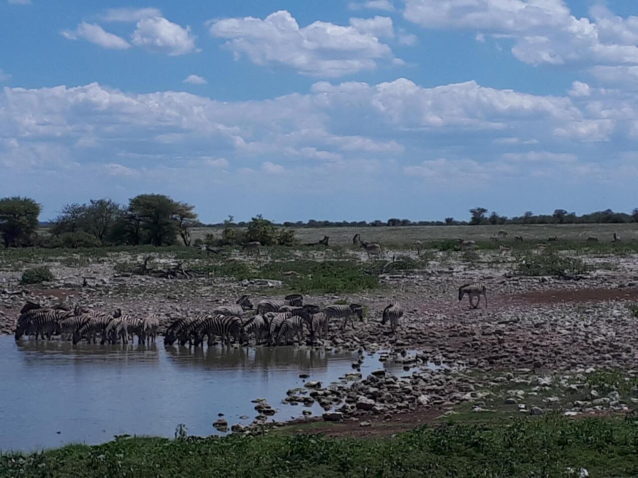 After a short night at Halali camp with many disruptions, of car alarms and honey badgers throwing over the bins. We woke up at 5:15 again, breakfast at 6.00 we drove out at 6:30. First 8 giraffesRead more