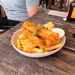 Als nächstes haben wir uns in ein Café direkt am Strand gesetzt und dort ein Bundaberg Ginger Beer, einen Cappuccino und Fish & Chips genossen. Dabei wurden Karten geschrieben und auch geguckt, was der Arbeitsmarkt so hergibt.🧑🏽‍💻