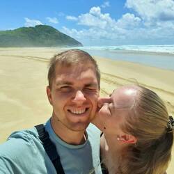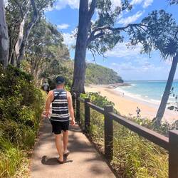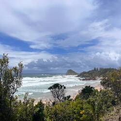 Nach dem Aufstehen sind wir ca. 30 Minuten nach Seal Rocks gefahren. Einem atemberaubend schönen weißen Sandstrand. Fast menschenleer 😍 obwohl das Wetter auch heute bewölkt war, war es doch warm und wir haben uns in Badesachen an den Stand gelegt. Dort haben wir den Großteil des Tages verbracht und entspannt. 🏖️ Jonas ist dann auch noch einmal im Ozean baden gewesen. 🌊🏊🏼‍♂️🩳