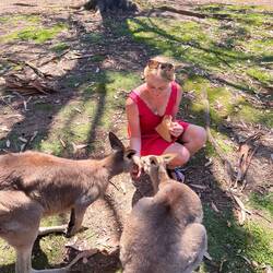 Am Eingang haben wir noch Futter für Kängurus bekommen und konnten diese in einem großen Freigehege füttern und streicheln. 🦘