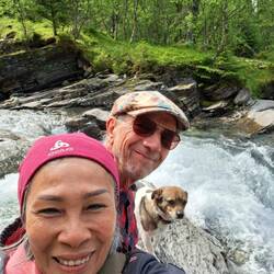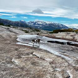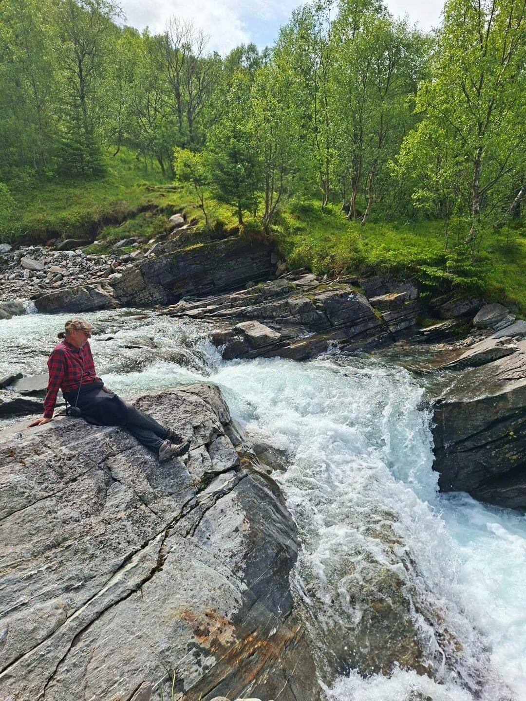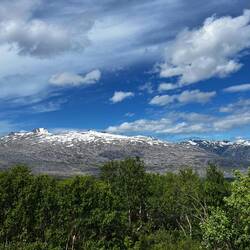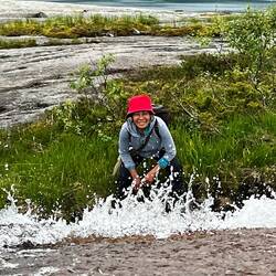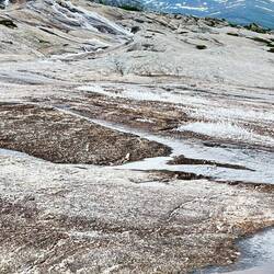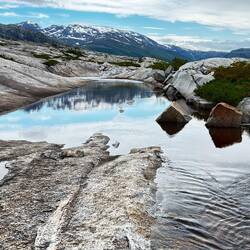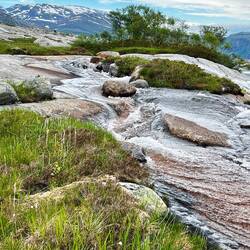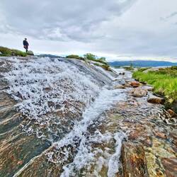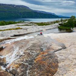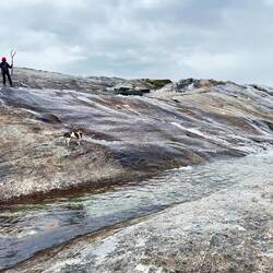 Weiter gehts auf der Kystriksveien an der Helgelandküste, wunderbare, vom Gletscher geschliffene Felslandschaft, leider hat das Wetter umgeschlagen und Starkregen hat uns in den Bus verbannt