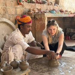 Nach unserer Nacht im Camp starten wir unseren ersten längeren Reisetag - ca. 4,5 Stunden Fahrt bis nach Pushkar. Die Straßen sind leider sehr ruckelig aber wir können dennoch alle etwas schlafenRead more