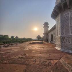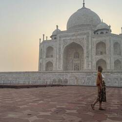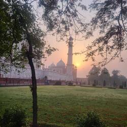 Wir sind für den Sonnenaufgang bereits um 05:30 losgefahren zum Taj Mahal - eines der sieben Weltwunder der Neuzeit.