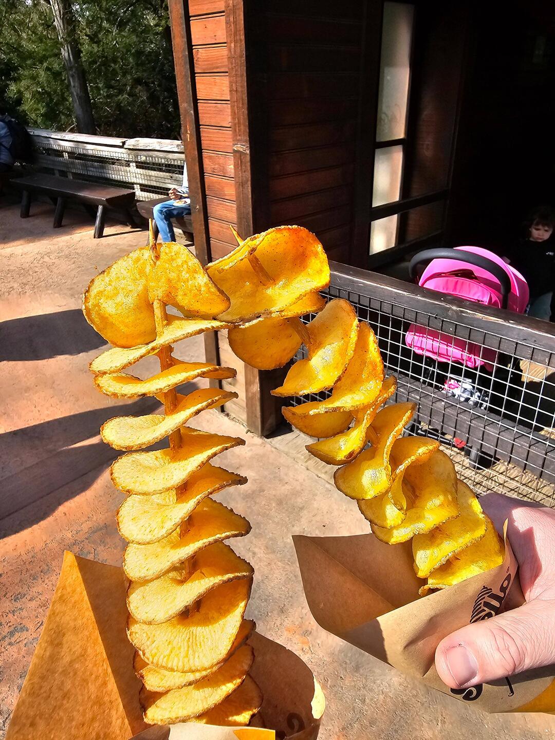 Nach den Wasserbahnen war die Zeitung von Stehen und Laufen geprägt. Der restliche Park wird betrachtet, ein paar Snacks vertilgt und die Wartezeit für die Achterbahn überbrückt.