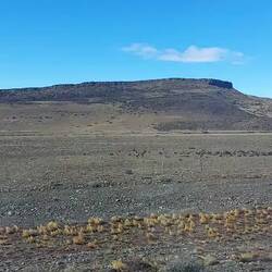 Und wie bei einem echten Abenteuer kommt alles anders als erwartet. Als sich nach mehr als 90 km nichts am („schottrigen“) Strassenbelag änderte, haben wir festgestellt, dass wir die ganze Zeit statt auf der Ruta Nacional 40 auf der Ruta Provincial 288 tuckeln. Hat aber sein Gutes, denn die geht direkt von West nach Ost und bringt uns so vielleicht (?) sogar schneller, auf jeden Fall mit weniger km ans Ziel. Solange unser Toyota rollt - und das tut er bis nach Puerto Santa Cruz - 7 h und 380 km, davon 148 km Schotterpiste. Norbert bekommt eine imaginäre Goldmedaille und in echt: ein gutes Abendessen.