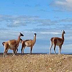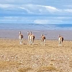 Und außer Pinguinen gab es noch: was großes im Wasser (Orkas? auf Pinguinjagd), ein ganz hübsches Vohelpärchen (ich tippe auf Queltehue - ohne Bild, da leider zu unscharf), Wildgänse, ein Peludo (Braunborsten Gürteltier, der hat es zumindest von hinten bis auf's Foto geschafft) und Greifvögel (Tiuque oder auch Chimango Karakara) - zum greifen nah. Die Natur hier ist wirklich vielfältig, wenn man sich Zeit dafür nimmt.