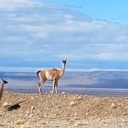 Unterwegs haben wir sehr, sehr viele Guanacos gesehen, die aber fast immer die Flucht vor uns ergriffen haben - wahrscheinlich weil wir auf der Steinpiste so einen Krach machen. Der eine, der sich (im Video) mit uns ein Wettrennen gibt, war noch auf der Asphaltstrasse.