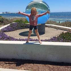 We drove along the foreshore to see the 'Big Marble'! The kids loved hiding behind and seeing the photos of themselves upside down!