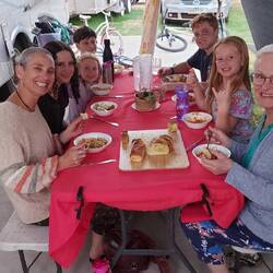 Then Ken, Jen, Isobelle and Matt came over for dinner. The canned chooks were a hit and some yummy roast veggies! What a feast and lovely evening to showcase TRICCE....