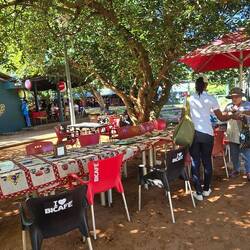 Day 82. Maputo, Mozambique. Part 3 of our Culture & Cuisine tour. Stop #5 was a roadside/oceanside restaurant that uses refurbished storage containers for their cooking and drink distibution. The foodもっと詳しく