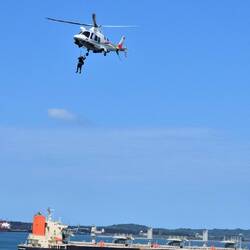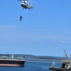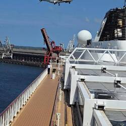 Before we could disembark, the harbor pilot was airlifted off the ship. He walked past me to his pick-up point and was hoisted up to the helicopter and taken away. It was an exciting new event toもっと詳しく