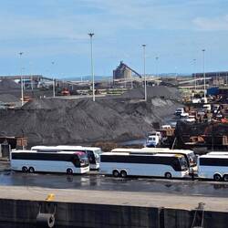 This port is the largest exporter of coal in the southern hemisphere. It was amazing to watch them load the coal and scrap metal onto trucks in the background while our excursion busses and localもっと詳しく
