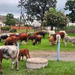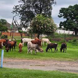 Things we saw on our way to Monkeyland. Sugarcane fields, cows feeding on the side of the road, and football stadium.