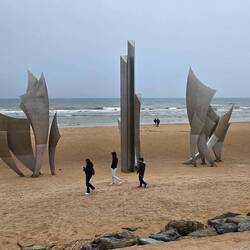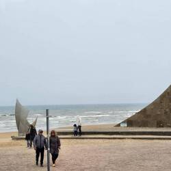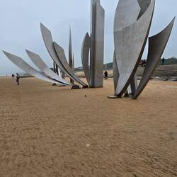 Stop #2 today was at Omaha Beach, where one of the bloodiest battles in history took place. This is where the Americans came ashore on D-Day. 10,000 soldiers were killed that day. There's a monumentLeer más