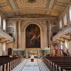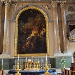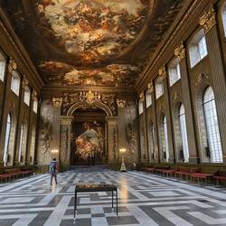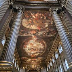 We're on the River Thames moored on a pontoon in Greenwich, just outside of London. We walked around the town and visited the old Naval College grounds. The Painted Hall was amazing. The ceiling wasLeer más
