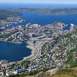 I did a panoramic tour around the city, then took the tram to the top of Mt Ulriken with Trish and Deb. Saw beautiful scenery from 2,200 ft at the top of the highest mountain surrounding the city.