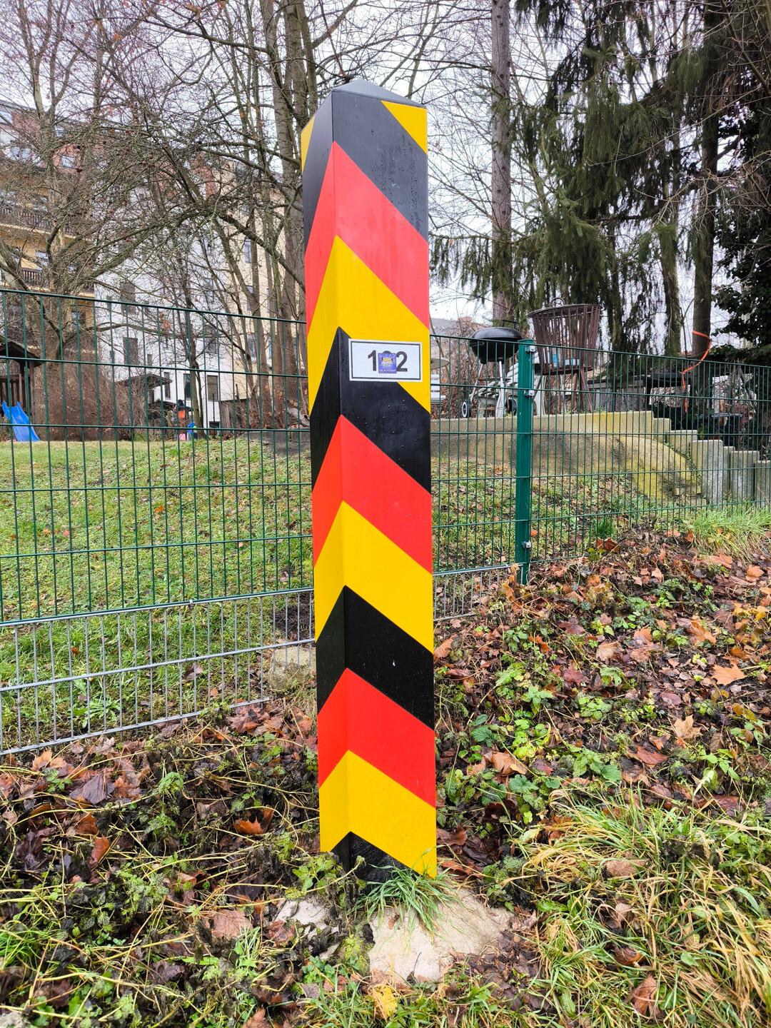 Entlang der Neiße am Grenz Pfeiler vorbei zum Weihnachtsmarkt.