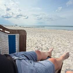 Das erste Mal in diesem Jahr barfuß am Strand. Morgens in der Sonne draußen frühstücken.
