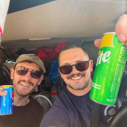Lieber Sebastian! Vielen Dank für deine Fotos. Habt ihr das Auto richten lassen müssen? Hoffentlich ist wieder alles in Ordnung. Wir wünschen weiterhin eine gute Reise. Herzliche Grüsse Deine Oma und Opa, bitte richte auch viele herzliche Grüsse an deinen Freund aus.