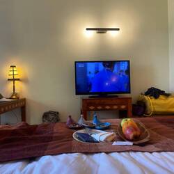 Wir hatten etwas Mühe die Zeit bis zum Ablegen rumzukriegen. Im Hotel rumsitzen, abends in den Ort zum Fisch essen fahren, und Fernschauen.