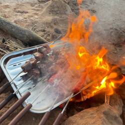 Wir kommen nach dem hindernisreichen (Auto Gaga) Einkaufen wieder zurück an unseren Platz am Meer. Wir trotzdem dem Wind noch 2 Nächte. Jamal kommt vorbei und entpuppt sich als recht BrauchbarerLæs mere