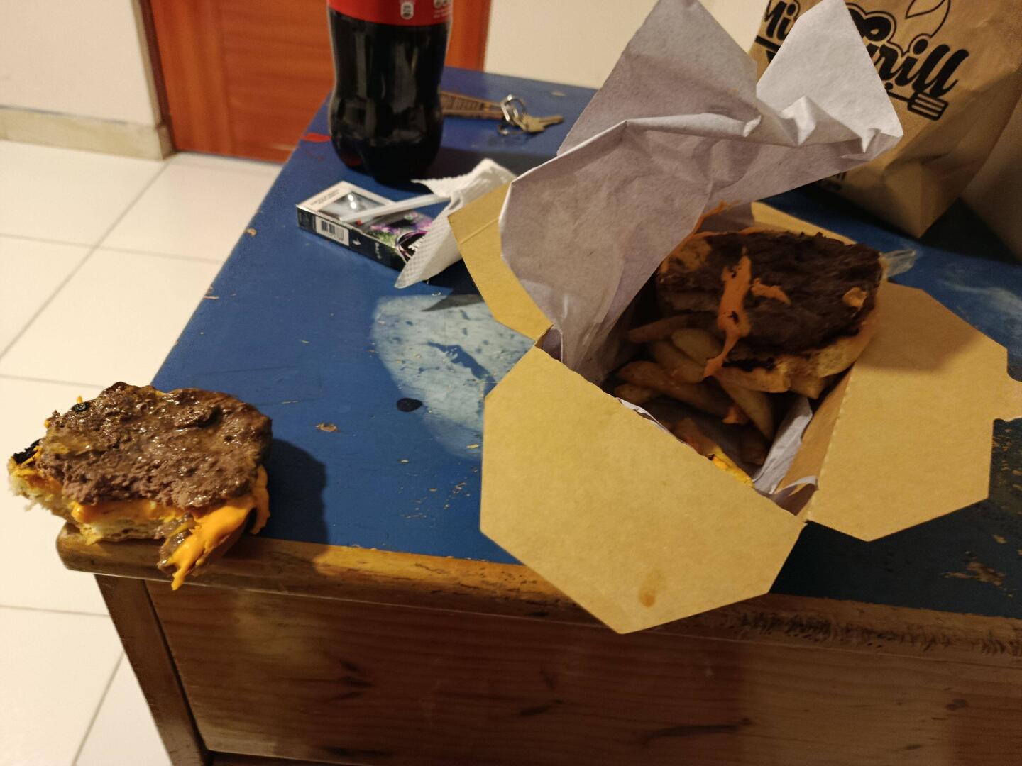 Dann zurück holte kurz in Apotheke Alprazolam und nen Hamburger und ne coca