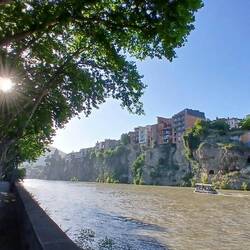 Wir fahren aus der Stadt immer entlang des Flusses Mtkvari.