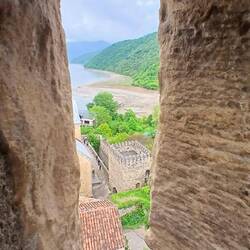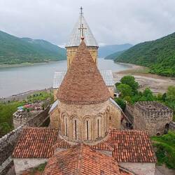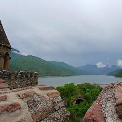 Sehr schön liegt die Festung am Rande des Jinvali Stausees.