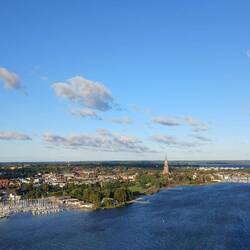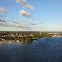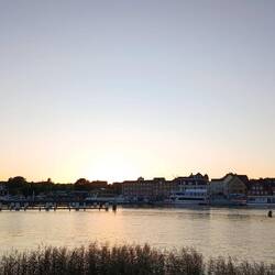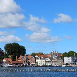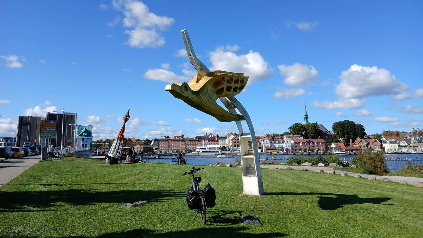 Schon bald kommt die hübsche Silhouette und die Klappbrücke über die Schlei in Kappeln in Sicht.