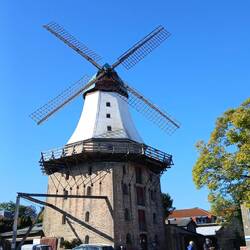 Auf komoot entdecke ich, dass es etwas Fjord abwärts eine Mühle gibt und beschließe dort einmal hinzufahren. Der Wind pustet mir kräftig kühl entgegen und hat richtig aufgefrischt, herrlich.