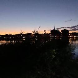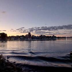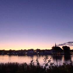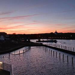 Zurück in Kappeln fahre ich noch mal zu dem kleinen Aussichtspunkt am jenseitigen Brückenkopf und genieße die abendliche Stimmung über dem Heringszaun.