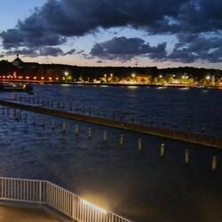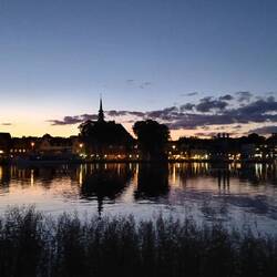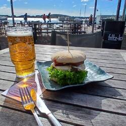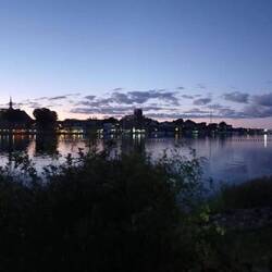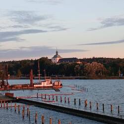 Das Schnellgericht mundet erstaunlich gut mit Blick auf Schloss Gottorf und die abendliche Schlei.