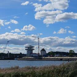 Seit Jahren geht der Bau der neuen Brücke über die Schlei und so enden hier seitdem die Züge nördlich und südlich der beiden Brückenköpfe und dieLue lisää