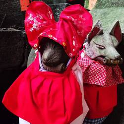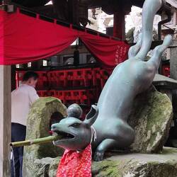 Chose que l'on aime et qui se démultiplie à l'infini : le rouge de ses Torii (portes) et des petits bavoirs des renards, messagers desRead more