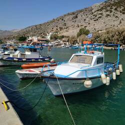 Het tweede eiland is Kalimnos. We varen een fjord in en daar ligt het idyllische Vathi. In Vathi worden sponzen verkocht die door duikers worden opgedoken. Hier genieten we van een eenvoudige maarBaca lagi
