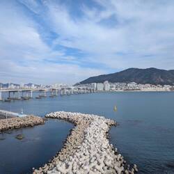 ...vormittags am Haeundae Beach mit Busan X Sky Tower.