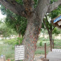 Vom S 21 folgten wir dem Weg der damaligen Gefangenen zu den Killing Fields (wovon es mehrere im Land gibt!). Dort sahen wir die Überreste weiterer Grausamkeiten. Massengräber, ein Baum, gegen denもっと詳しく
