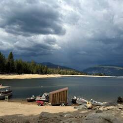 Das VVR ist ein Zivilisationsaussenposten, der nur über eine kleine Straße mit vielen Schlaglöchern an die Welt angeschlossen ist, die Fahrt bis zum nächsten Ort dauert 1,5 Stunden. Die Lage ist traumhaft. Direkt am Edison Stausee. Dort befindet sich auch ein Campground, der vor allem Angler anzieht und eine sogenannte "Pack-Station". Wir sprechen mit ein paar der älteren Herren, die die Pferde dieser Pack-Station betreuen und damit Essen und Material nach Kundenwunsch überall hin in die Sierra bringen. Auch Ausritte in die Wildnis werden angeboten. Cowboys, nur ohne Kühe, aber dennoch volles Marlboro-Feeling.