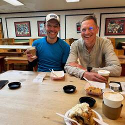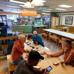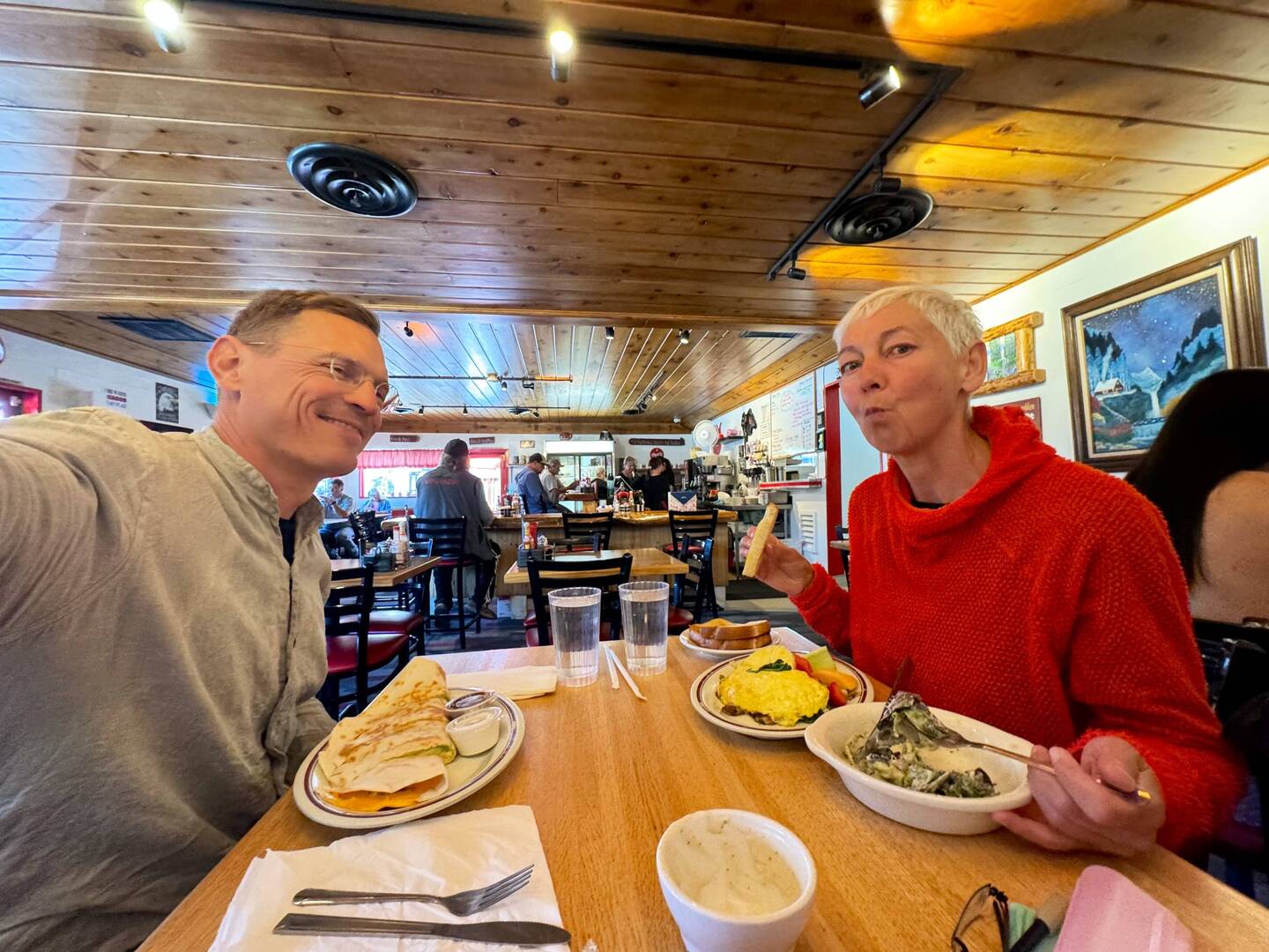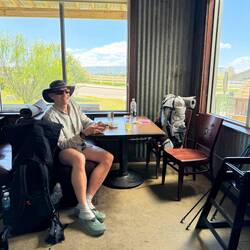 Nach dem Frühstück im Diner geht’s mit schweren Rucksäcken zurück auf den Trail. Wir haben für 6 Tage Futter dabei.