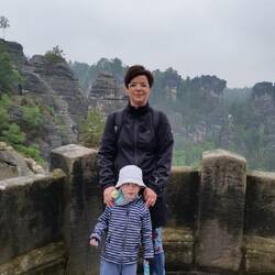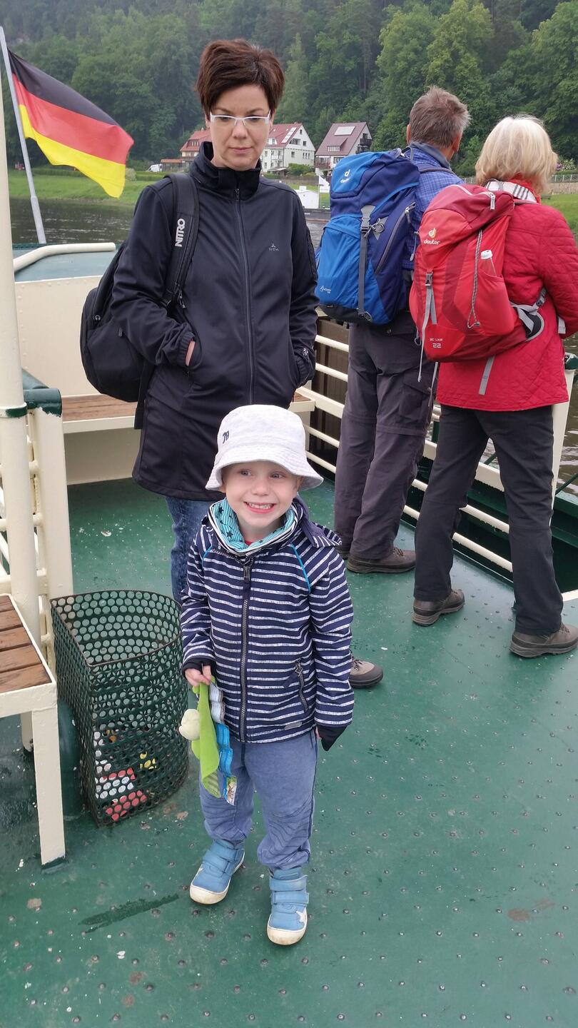 ... mit dem Raddampfer nach Raten und dann zu Fuß auf die Bastei. Papa war so nett und hat mich fast den ganzen Weg getragen!!!