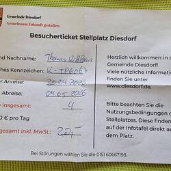 Wohnmobilstellplatz im Zentrum von Diesdorf, bezahlen im Ort. ZB im Nahkauf.