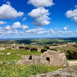 Die Burg Marvão ist im 8. Jahrhundert durch einen maurischen Rebellenführer auf einem Quarzitfelsen erbaut worden. Das Sprichwort besagt, dass man von hier das ganze Land überblicken könne. 😊
