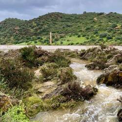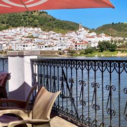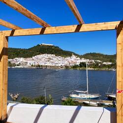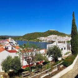 Mertola liegt auf einer Felsnase über der Mündung des Río Oeiras in den Río Guadiana. Beide führen zur Zeit Hochwasser.