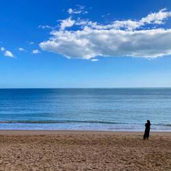 Heute besuche ich den Strand „Praia do Barril“ auf der 14 Kilometer langen Insel von Tavira. Der Weg dorthin führt mich zunächst über einen schmalen Steg zur Schmalspurbahn, die eine malerischeLue lisää