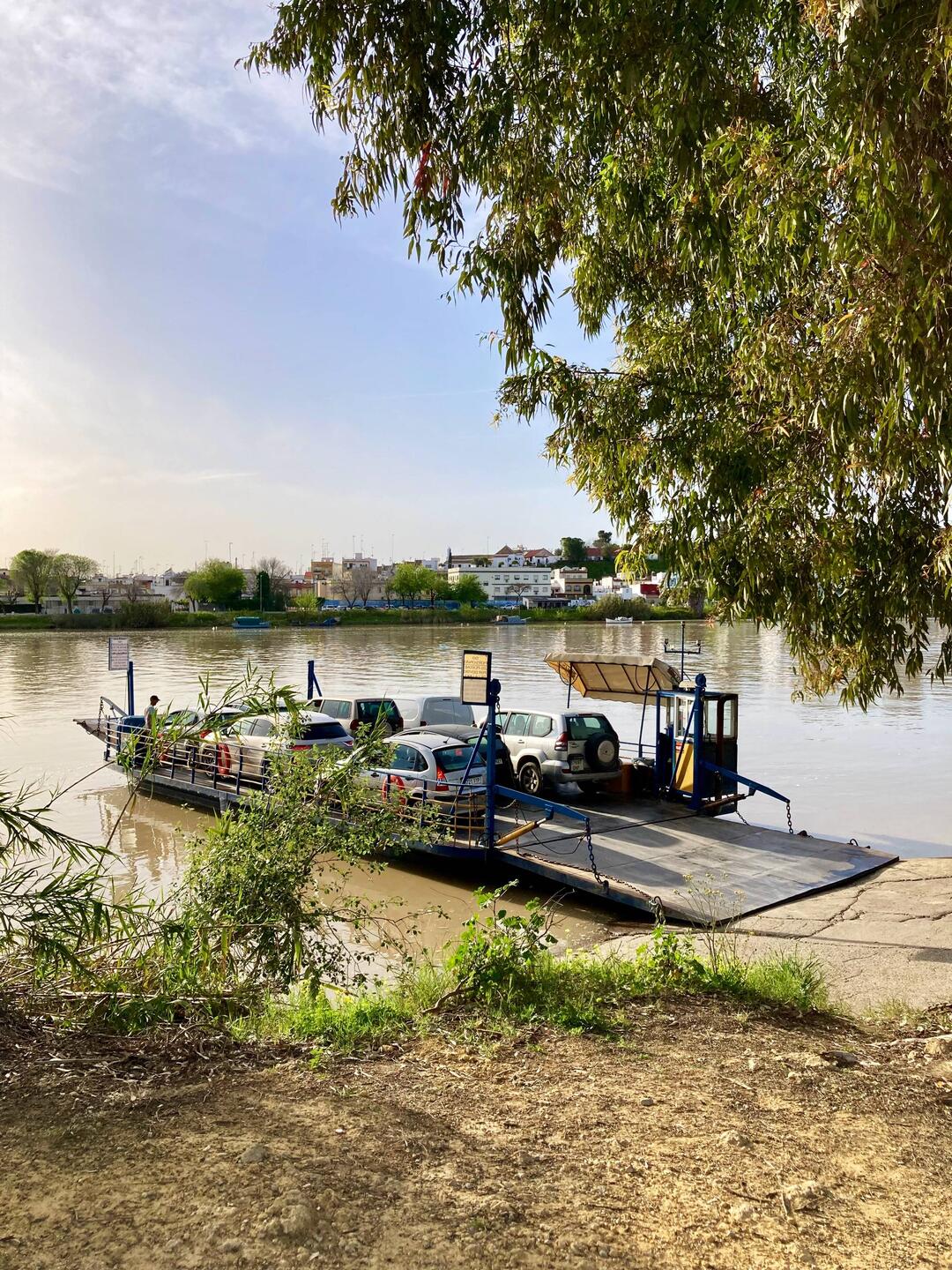 Die kleine Fähre bringt mich schnell über den Guadalquivir. Das spezielle an dieser Fahrt ist, dass sich die Fähre ständig dreht.