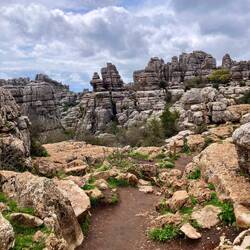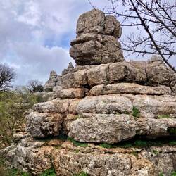 Hinter einer Kurve liegt er plötzlich vor mir, der Berg, auf dem ich eine Wanderung machen möchte: El Torcal (vollständig Paraje Natural Torcal de Antequera) ist ein 1171 ha grossesLeia mais
