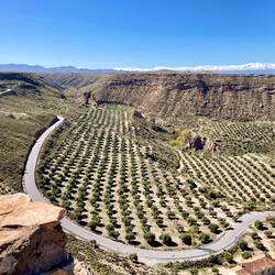 Ich verlasse Antequera und fahre durch eine abwechslungsreiche Landschaft in die Region etwas nördlich von Granada, wo ich in Olivares die Ruta del Gollizno, eine Wanderung durch eine Schlucht,Leia mais