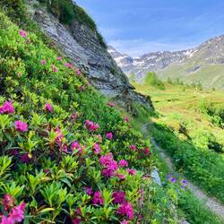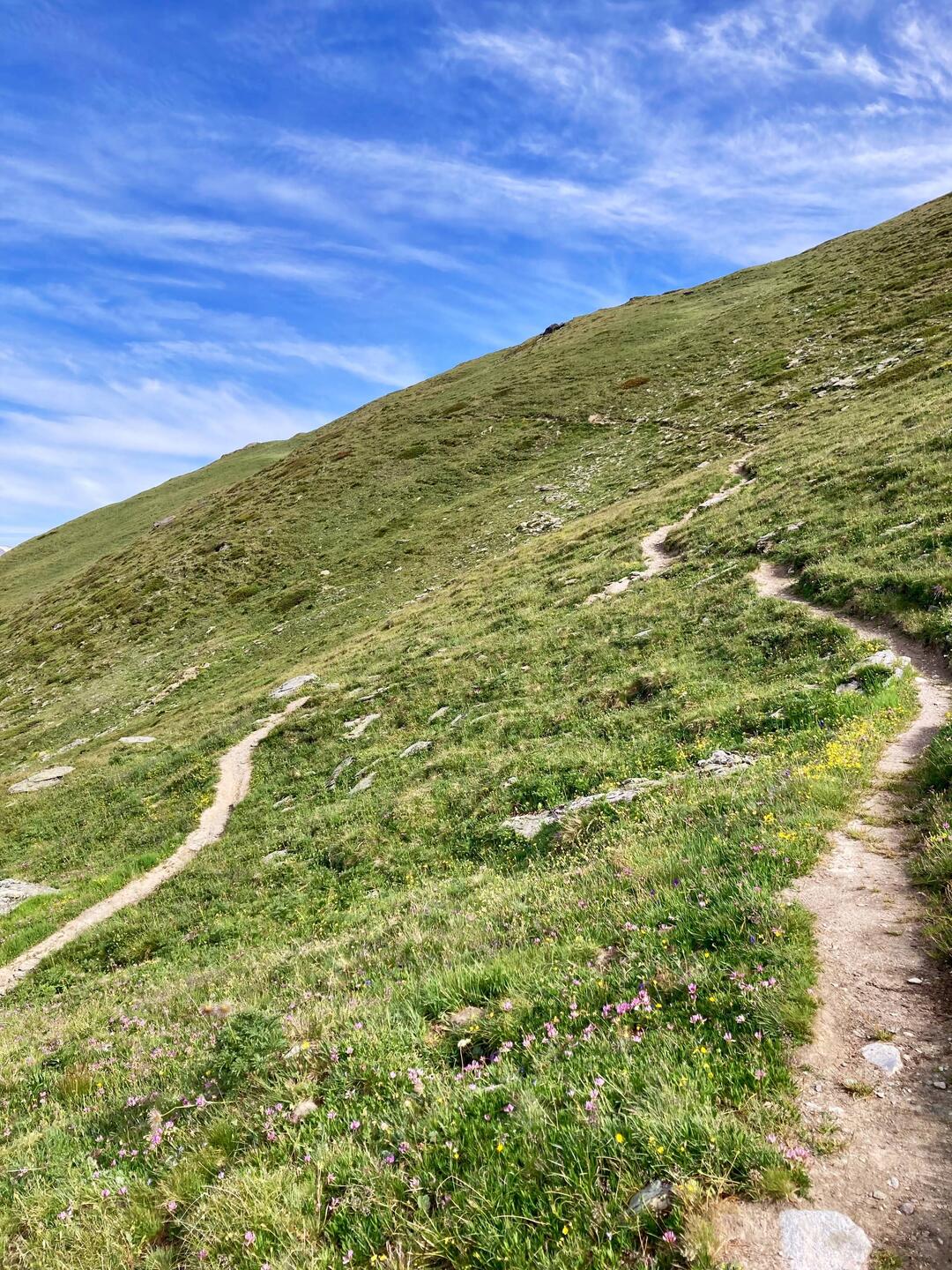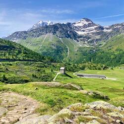 Für heute sind 34 °C angesagt – Grund genug, in die kühlere Höhe zu flüchten. Ich entscheide mich für die zweite Etappe des Stockalperwegs, von der Passhöhe hinunter nach Simplon Dorf.
