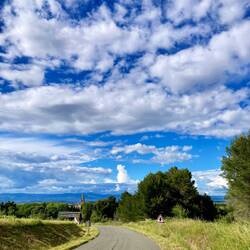 Was zieht denn da am Himmel auf? Es ist höchste Zeit die Regenjacke anzuziehen! Keine 3 km später bin ich mitten im Gewitter. Bei einem Geschäft stehe ich unter und warte das Ende des Regens ab.Read more